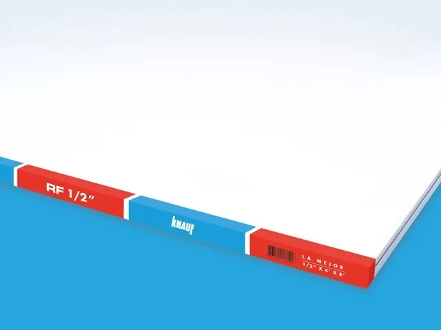 La placa de yeso Knauf RF, consta de un núcleo de yeso resistente al fuego, recubierto con cartón reforzado 100% reciclado con acabado natural al frente y color craft al reverso. El cartón del frente viene doblado alrededor de los bordes longitudinales son biselados, con el p...